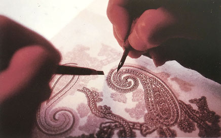 何世紀にもわたり、シルクスクリーンの印刷は、絹を木枠に張ったスクリーンを使って行われていました。1950年代まで、日本ではこの方法で生地へのプリントが行われていたのです。創業者である憲生は、父から伝統的な友禅染めの技術を学んだ後に、この技術を習得しました。